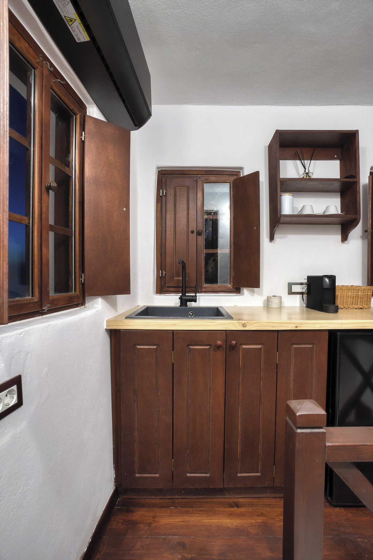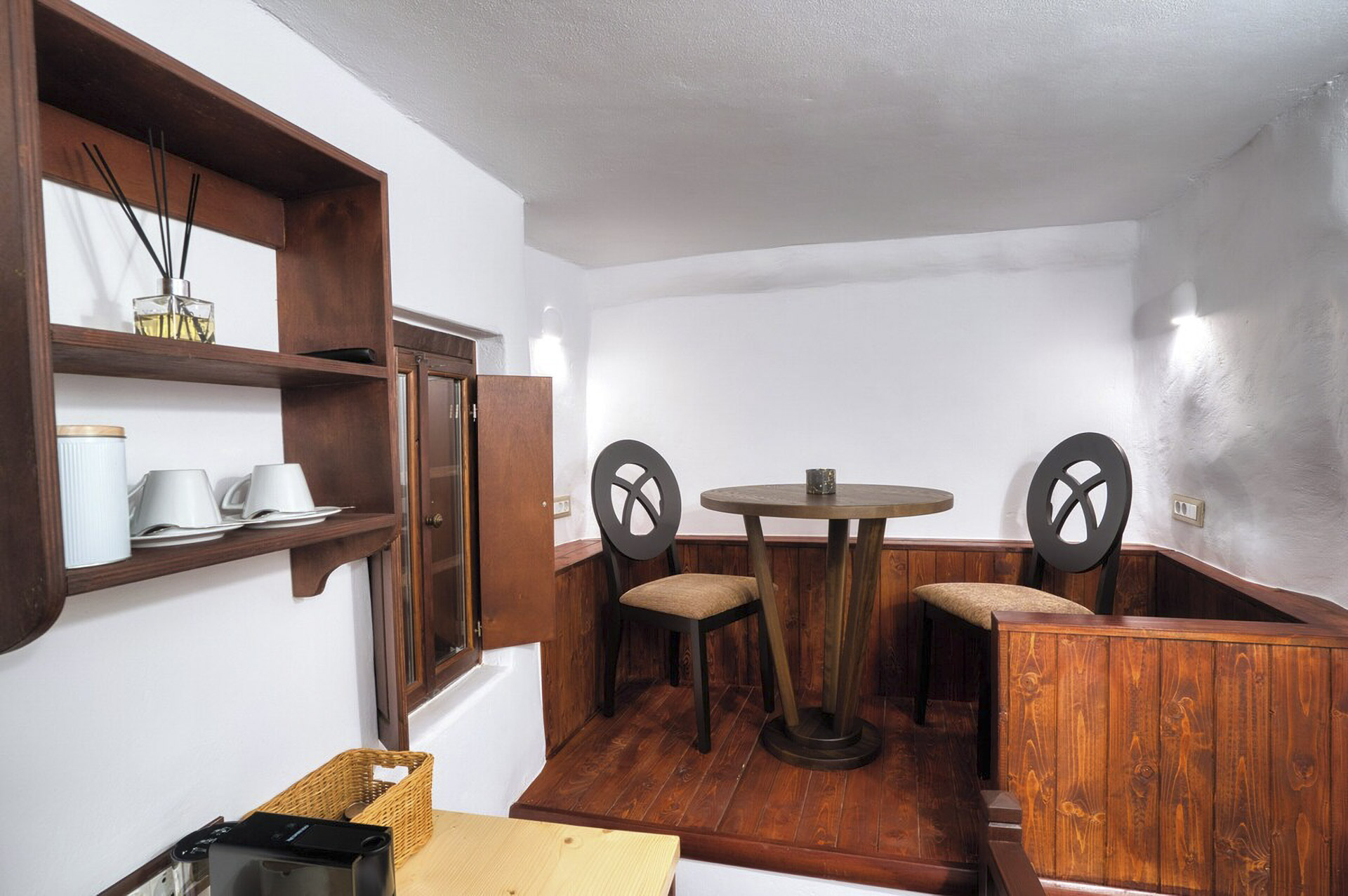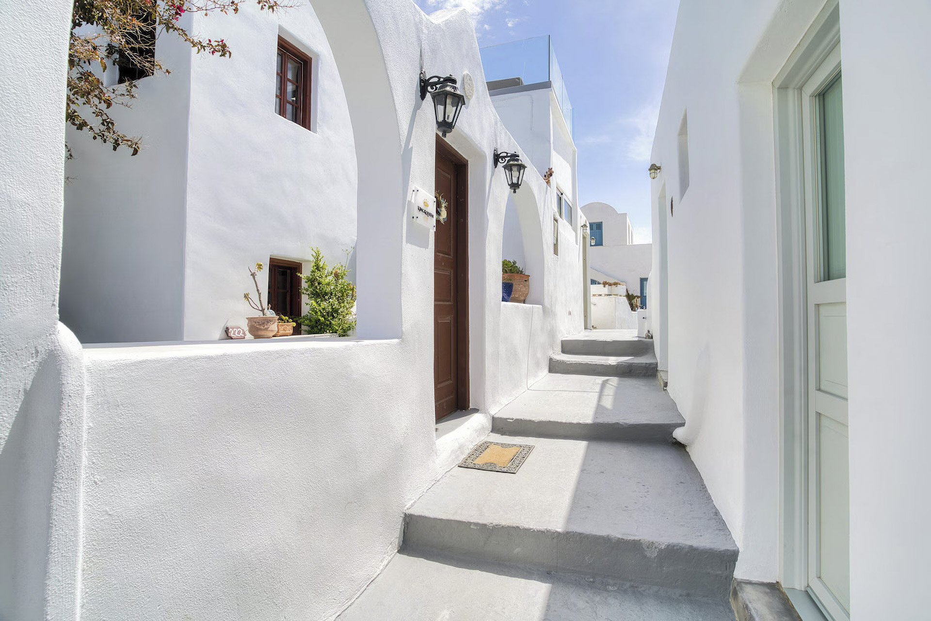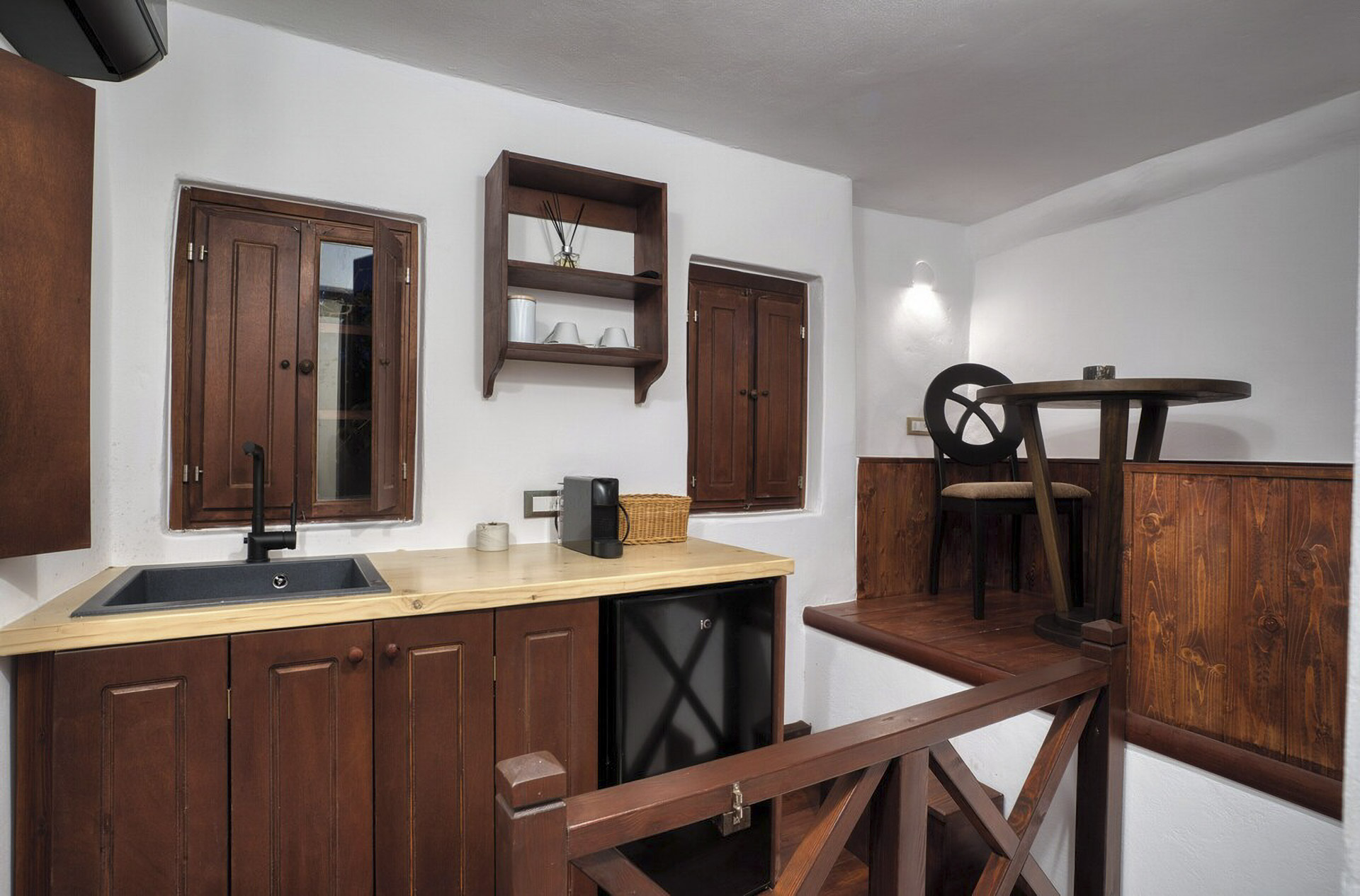 The ultimate romantic escape for couples in an exquisite suite with a private hot tub, meticulously renovated according to the iconic traditional cave-style architecture of Santorini.
